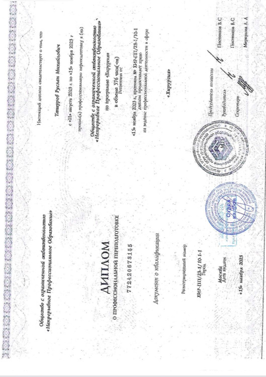 «Файбер Клиник» — это аккредитованный медицинский центр, который включен в Государственный реестр учреждений, осуществляющих медицинскую деятельность. Наши специалисты имеют лицензии и сертификаты по специальности «Хирургия», «Сердечно-сосудистая хирургия», «Ультразвуковая диагностика», «Терапия».